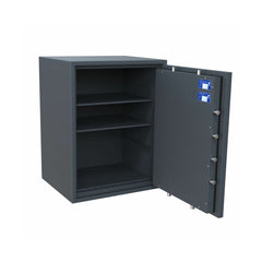 De kluis is uitgerust met een EN 1300 gecertificeerd dubbelbaard klavierslot, voorzien van 2 sleutels, voor een veilige en eenvoudige toegang. Daarnaast kunt u de kluis ook kiezen met een EN 1300 gecertificeerd elektronisch slot, inclusief batterijen, wat zorgt voor een gebruiksvriendelijke en gemakkelijke toegang zonder gedoe met sleutels.