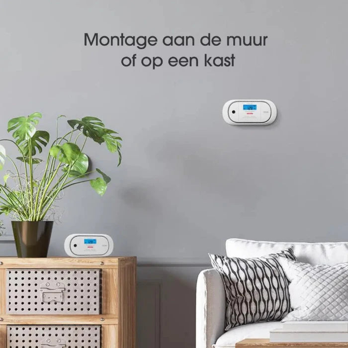 Deze koolmonoxidemelder kan gemakkelijk op een kast staan. Wil je de XC01 toch liever stevig tegen de muur monteren, met de handige meegeleverde aftekenmal markeer je makkelijk de juiste plek voor de gaten.